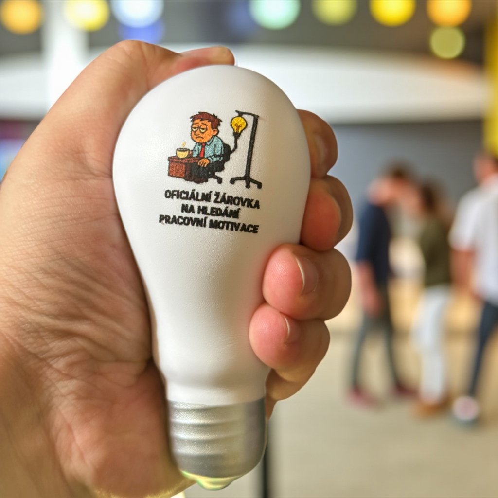 Máte pocit, že vám dochází energie a pracovní motivace? Sáhněte po antistresovém míčku ve tvaru žárovky! Stačí pár stisků a napětí je pryč. Díky originálnímu designu pobaví nejen vás, ale i kolegy v kanceláři.