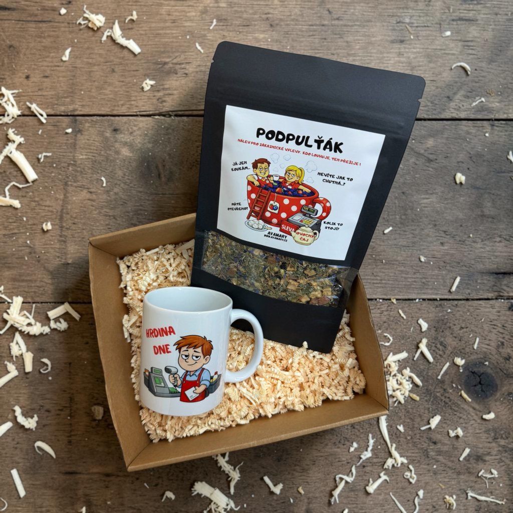 Některé směny si říkají o jediné – na chvíli zmizet „pod pult“, dát si pauzu a vychutnat si poctivý hrnek voňavého čaje. Přesně pro tyto chvíle vznikl originální dárkový set pro prodavače s hrnkem a ovocno-bylinným čajem Podpulťák – lesní plody.