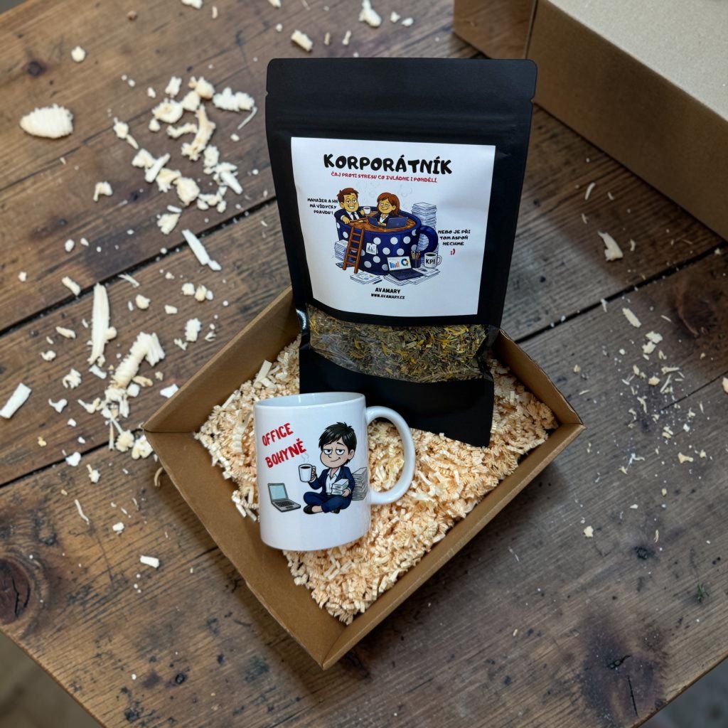 V setu najdete vtipný keramický hrnek o objemu 330 ml s korporátním motivem a k tomu bylinný čaj proti stresu, který pomáhá zklidnit mysl, uvolnit napětí a na chvíli vypnout mezi meetingy, deadliny a nekonečnými tabulkami.