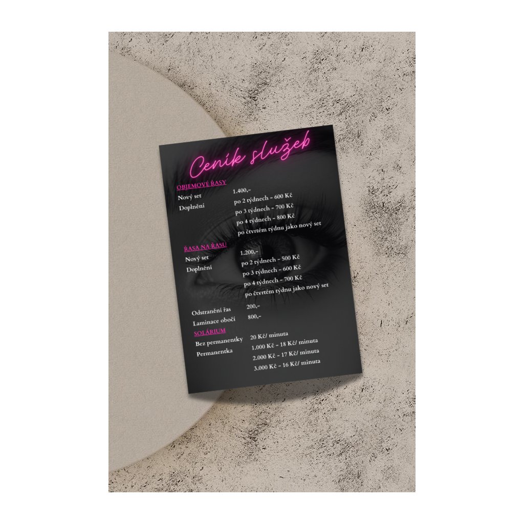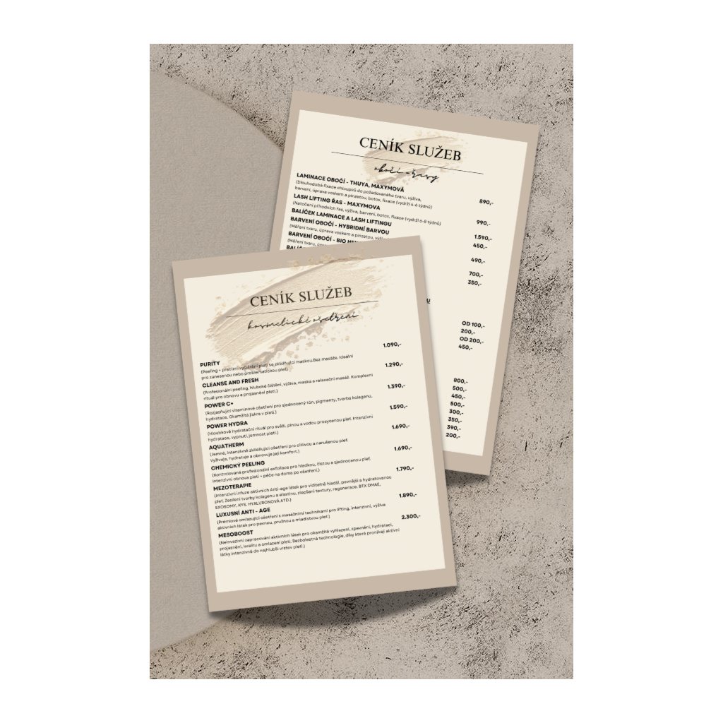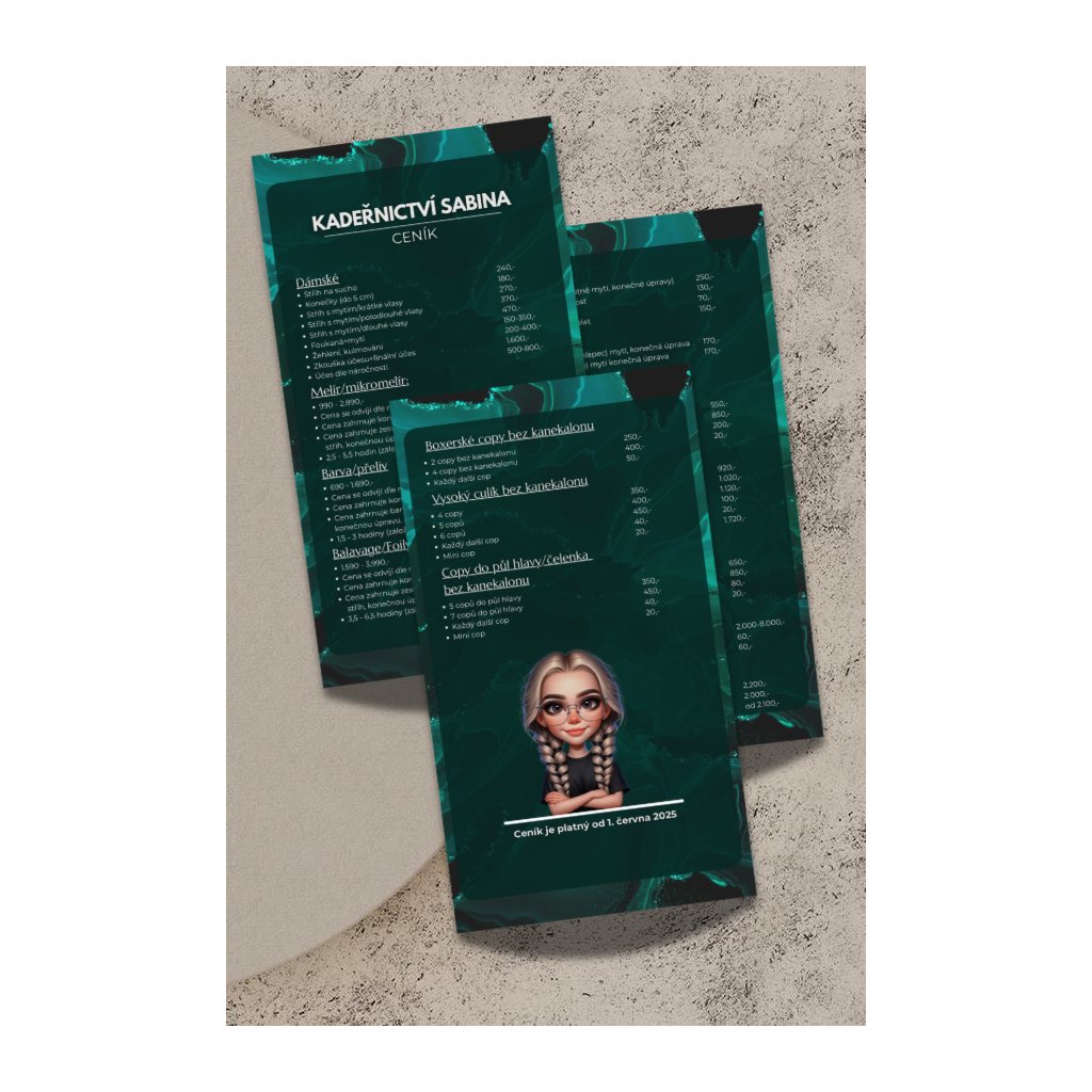 Navrhnu moderní a přehledný ceník služeb pro beauty salony, kadeřnictví a podnikatele.
