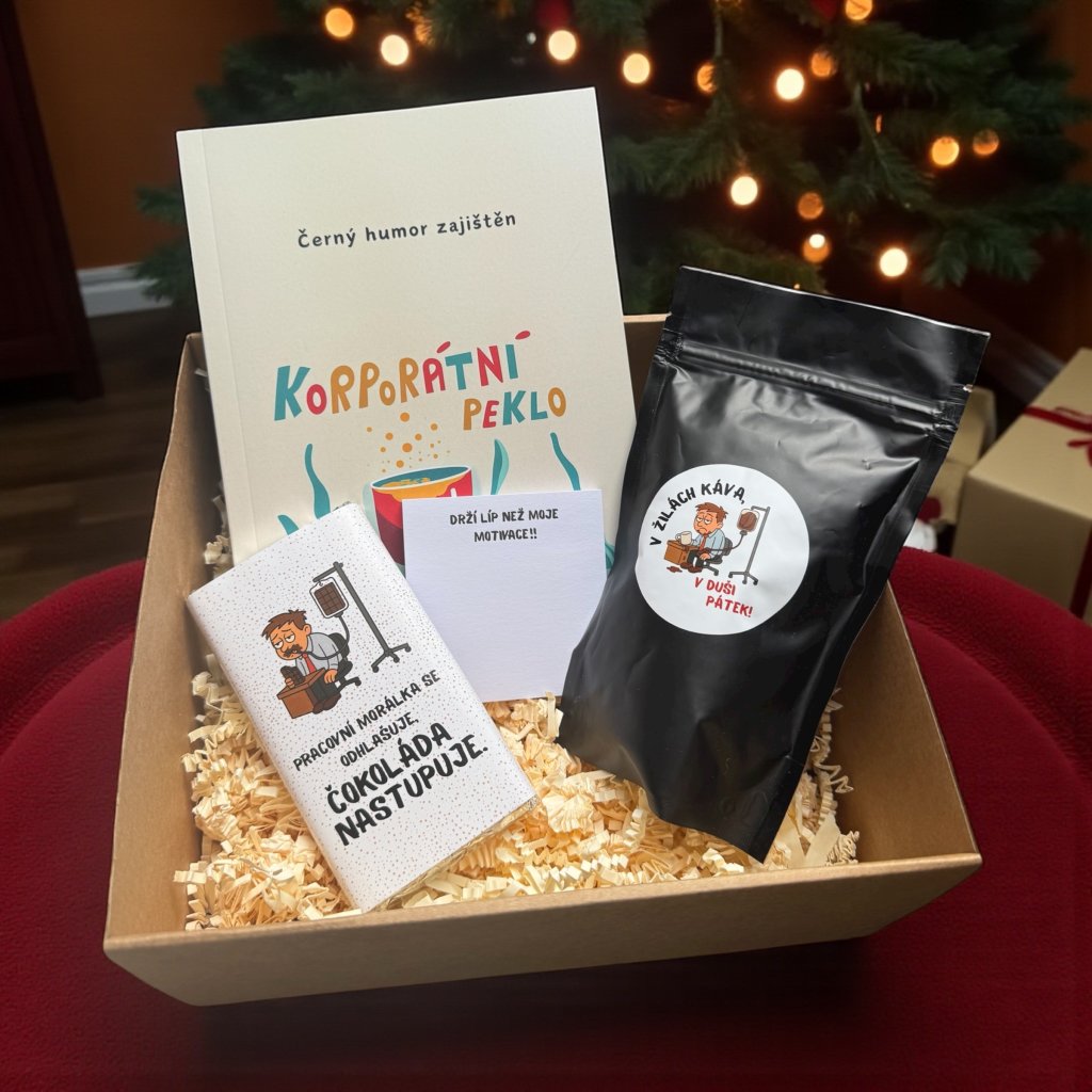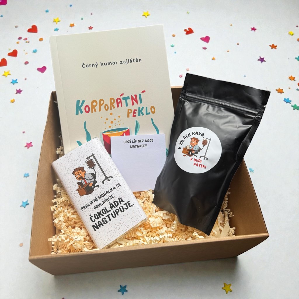 Pro všechny, kdo už dávno pochopili, že práce je spíš survival než hobby. Tahle krabička první (kofeinové) pomoci pomůže zvládnout i ty nejdelší porady, nejabsurdnější e-maily a nejpřetvářenější firemní úsměvy.