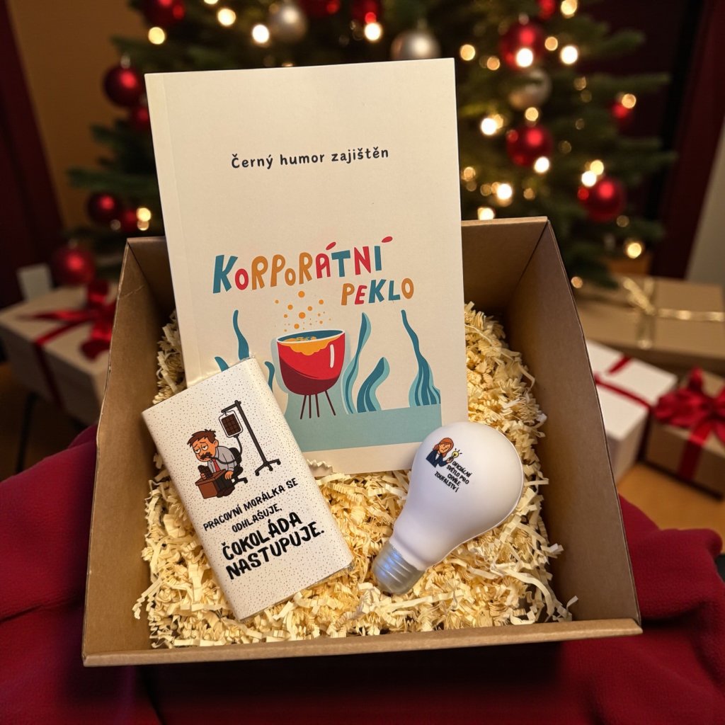 Protože někdy už ani porada o synergii nepomůže. Tento box je určený všem, kteří tráví život ve světě KPI, brainstormingů a „rychlých callů“ — a přesto si zachovali smysl pro humor.