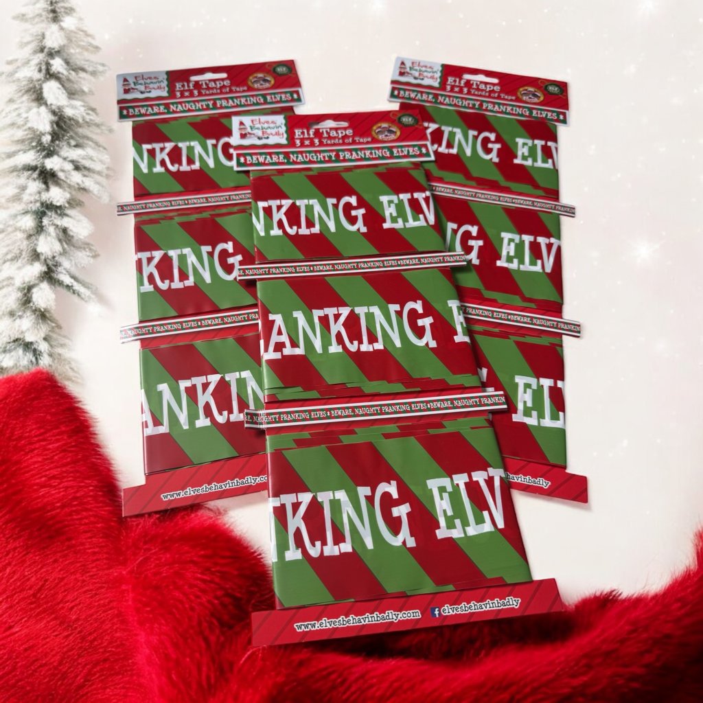 Veselá lepicí páska v typických vánočních barvách, která varuje před zlobivými elfy a jejich neplechami.