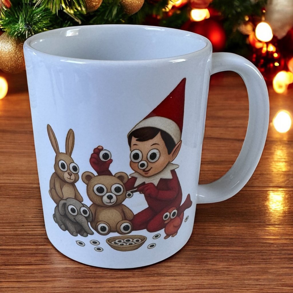 Veselý hrneček, na kterém elf rozdává svým plyšovým kamarádům legrační oči, rozesměje každé dítě u snídaně i u večerního kakaa. Skvělý doplněk k vánočním hrám i jako originální dárek.