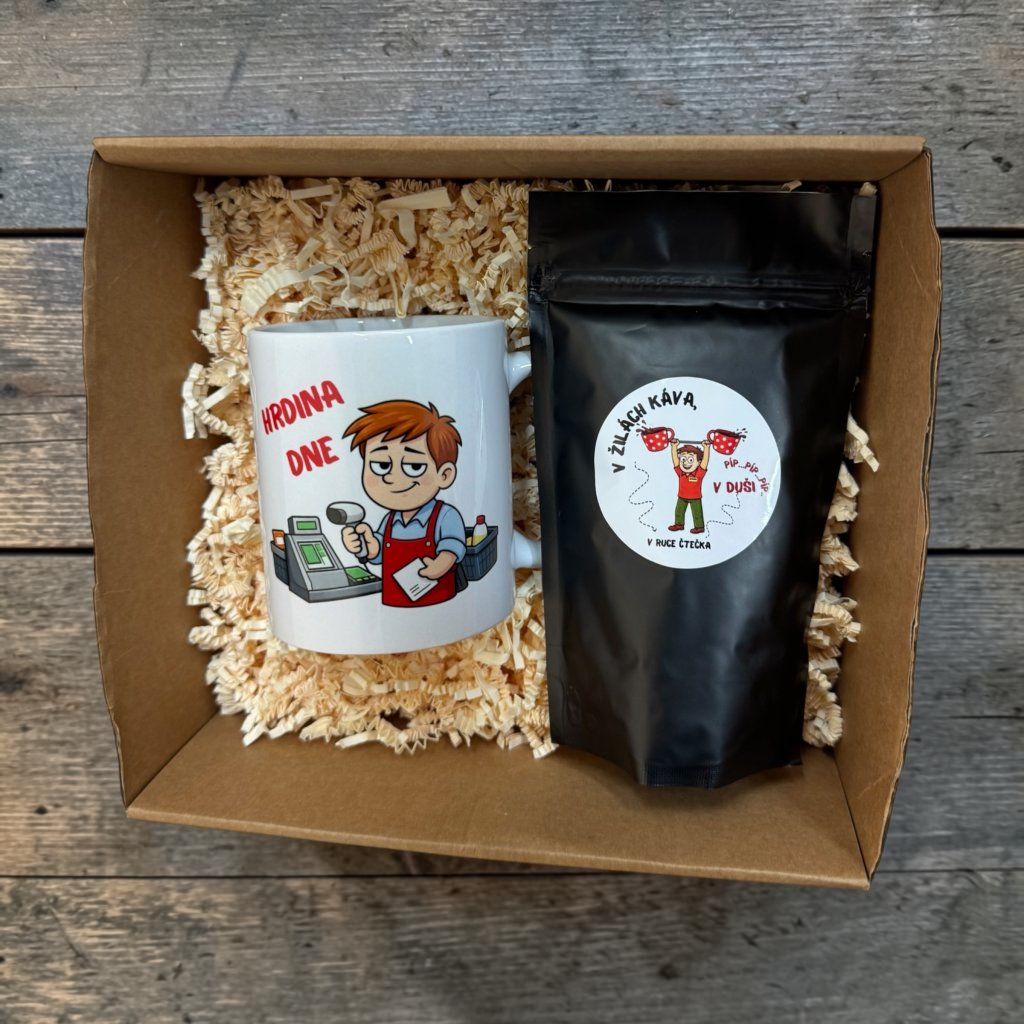 Dárkový set „Hrdina dne“ – hrnek 330 ml + káva