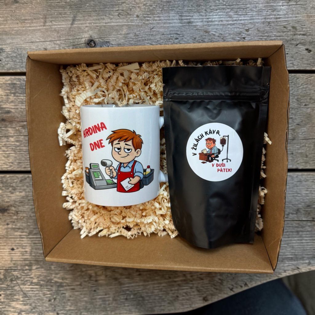 Protože každý hrdina potřebuje svou dávku kofeinu. Tento vtipný dárkový set potěší všechny, kteří zvládají pracovní chaos, zákazníky, deadliny i pondělní rána s úsměvem (nebo alespoň s kávou v ruce).