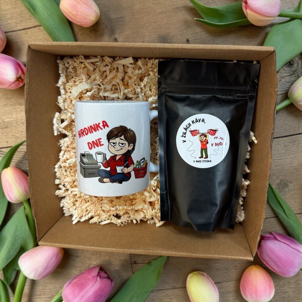 Uvnitř dárkového balení najdeš keramický hrnek o objemu 330 ml s motivem „Hrdinka dne“ a k tomu výběrovou zrnkovou kávu 100 g, která promění i ten nejnáročnější den na malý pátek.