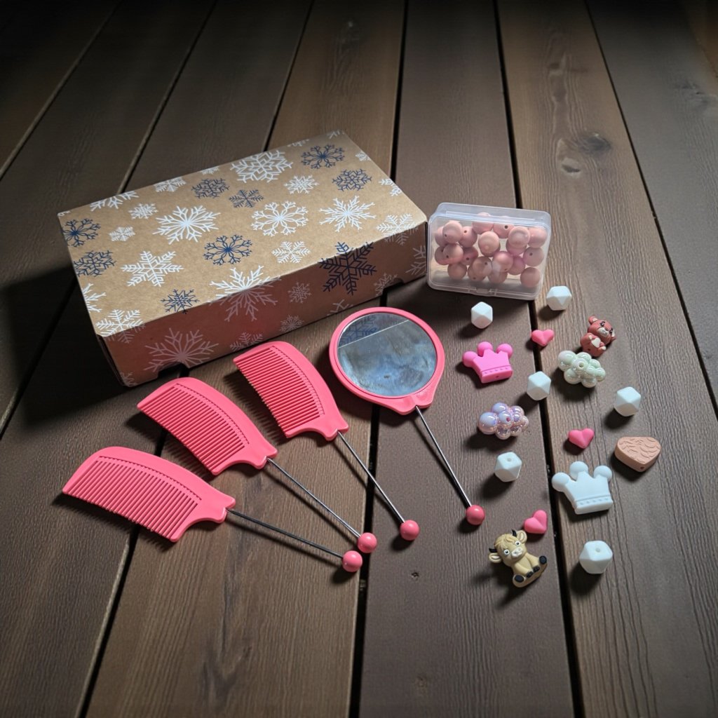 Růžová radost pro malé i velké princezny! Tento kreativní box je plný hravých doplňků, korunek a srdíček, které potěší každou tvořivou duši. Stačí jen zapojit fantazii a vytvořit si vlastní kouzelné doplňky.