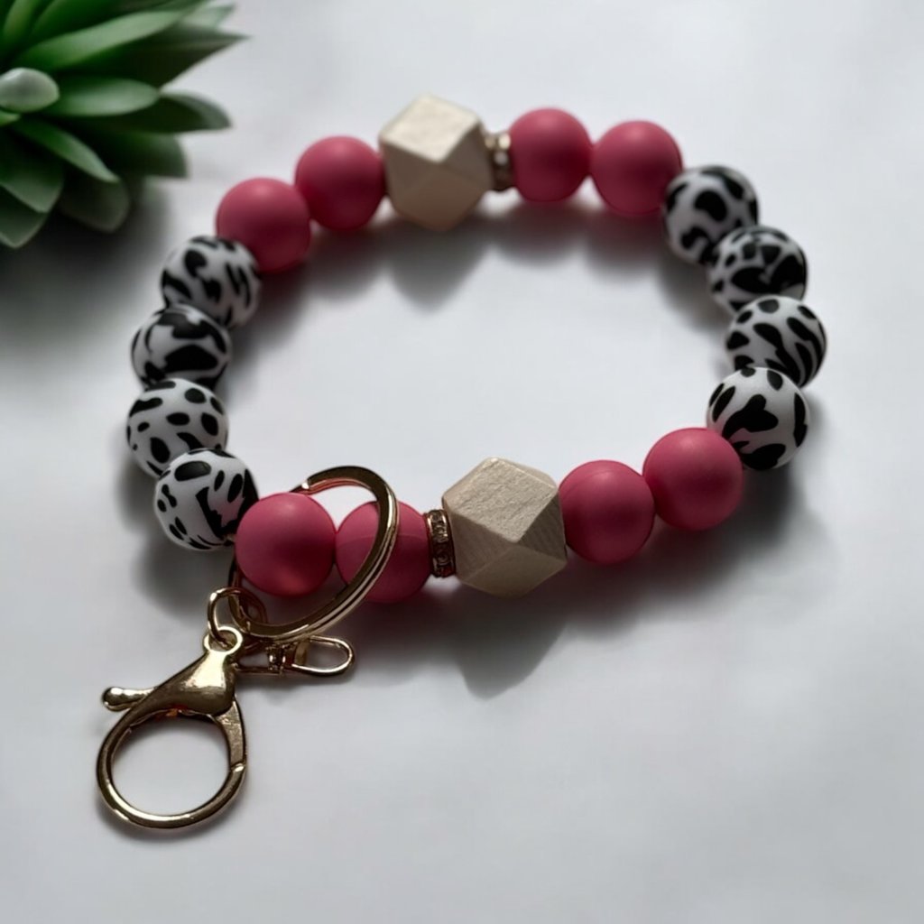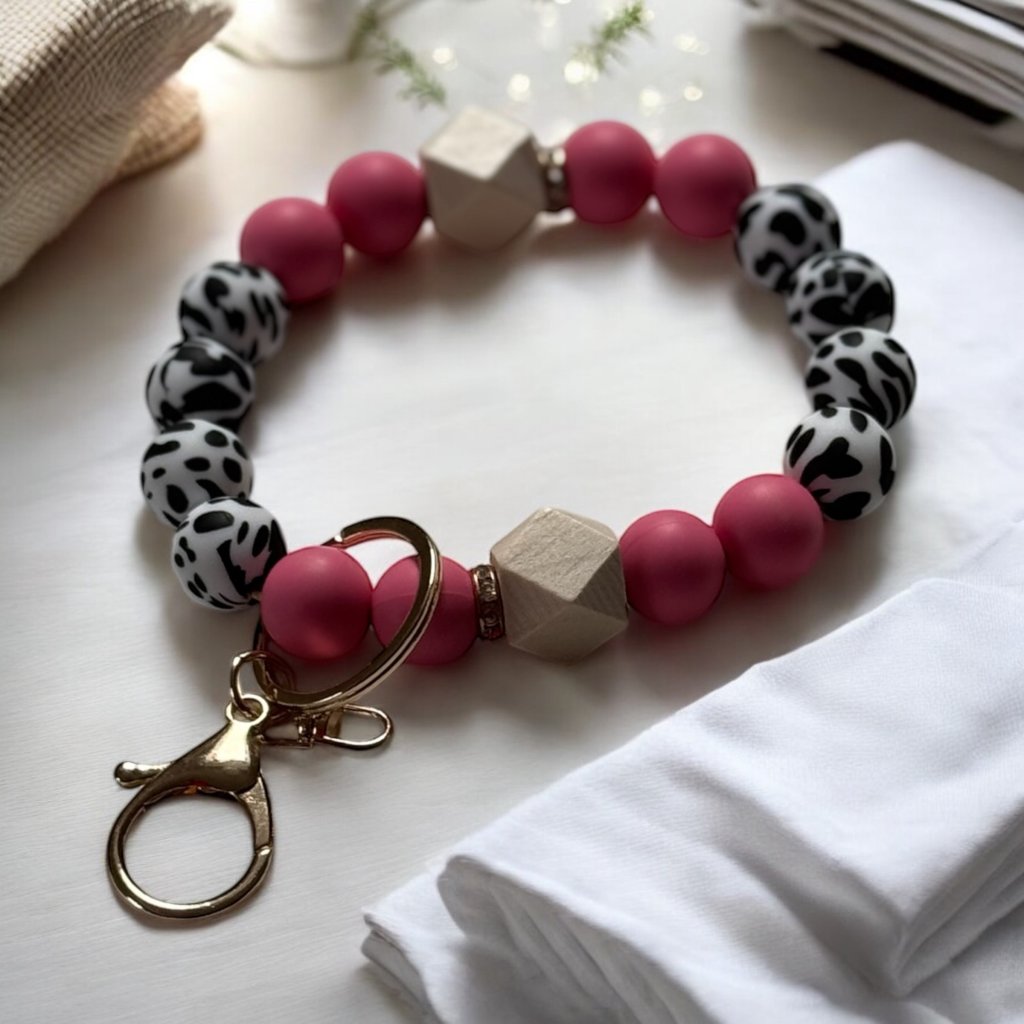 Náramky na klíče z kombinace silikonových a dřevěných korálků (15 mm)
