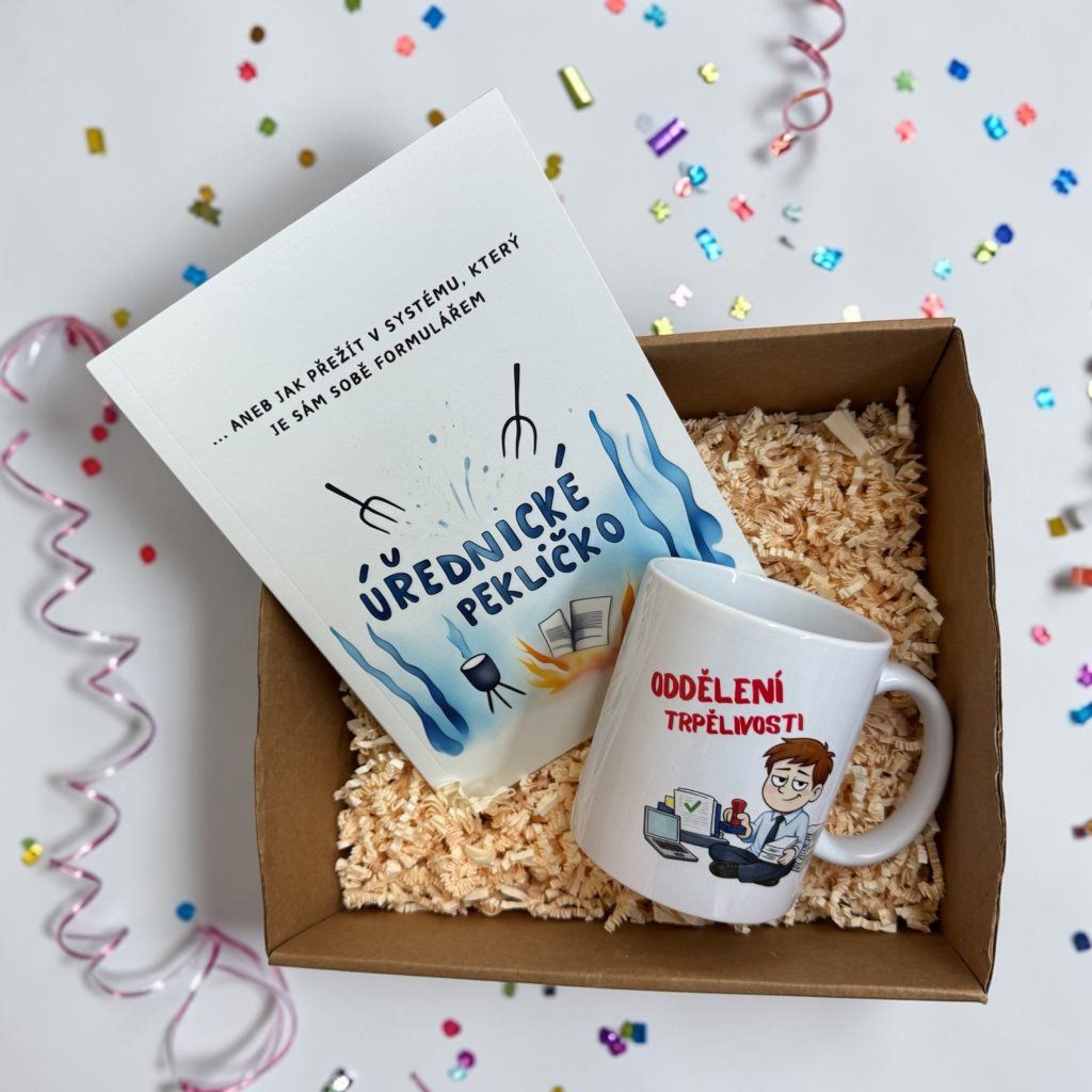 Vtipná kniha Úřednické peklíčko plná černého humoru ze života za přepážkou doplněná o stylový keramický hrnek 330 ml s originálním motivem, který zpříjemní každou ranní kávu v kanceláři i odpolední chvíli mezi papíry.