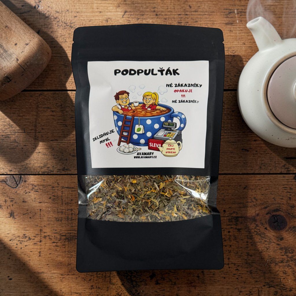 Každý, kdo někdy pracoval v obchodě, ví, že existují dny, kdy je potřeba hluboký nádech, pevné nervy… a pořádný hrnek čaje. Přesně pro tyto chvíle vznikl Podpulták – bylinný čaj, který pomáhá zklidnit mysl a přežít i ty nejnáročnější zákaznické situace.